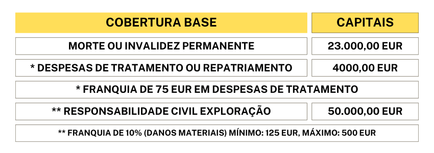 - As coberturas e franquias desse seguro são como indicado na seguinte tabela: